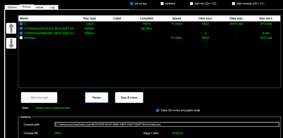 This panel is where the operator can start/stop the ransomware and choose which drives to encrypt