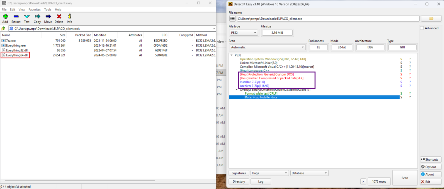 Inside the archive we can found Everything64.dll, its not an actual dll but its another compressed zip archive, this time password protected