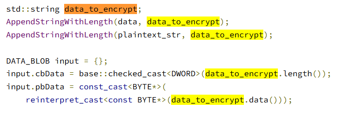 - data_to_encrypt is encrypted using DPAPI of the user context