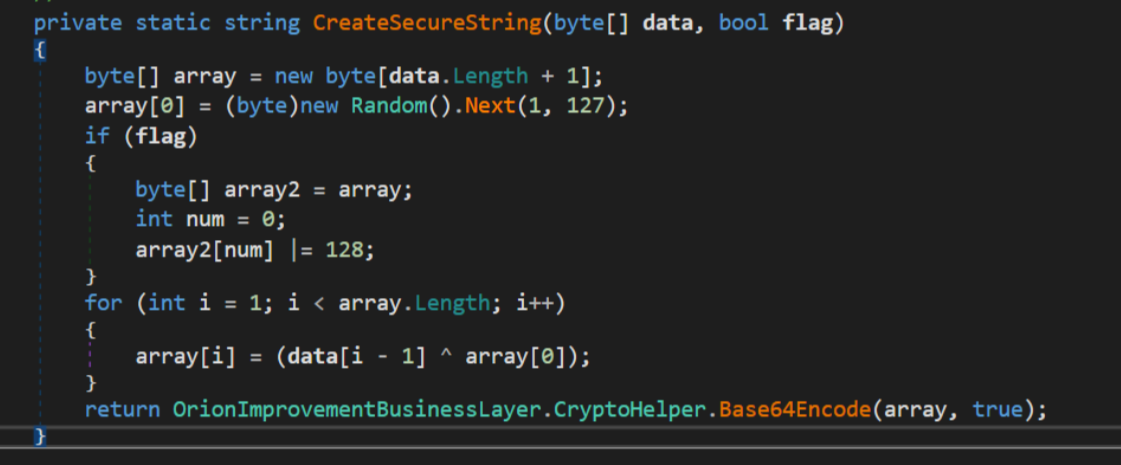 This value is then concatenated with a character generated by OrionImprovementBusinessLayer.CryptoHelper.CreateString.