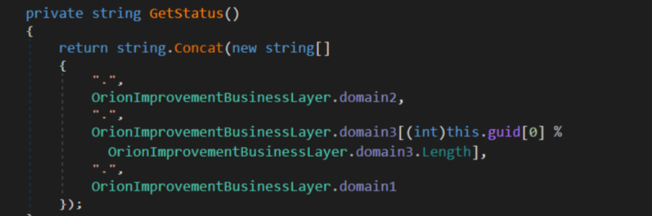 OrionImprovementBusinessLayer.GetStatus is responsable for concatenating the strings in the domain